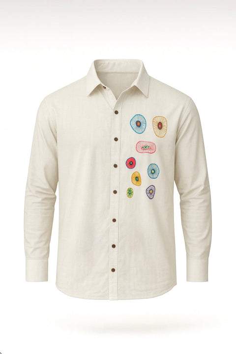 Multicolor Handwork Art Motifs Soft Cotton Shirt